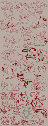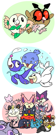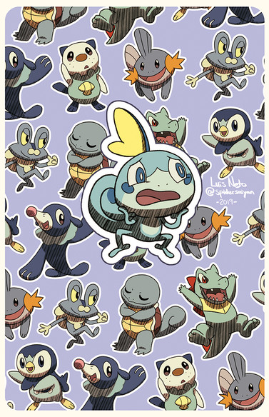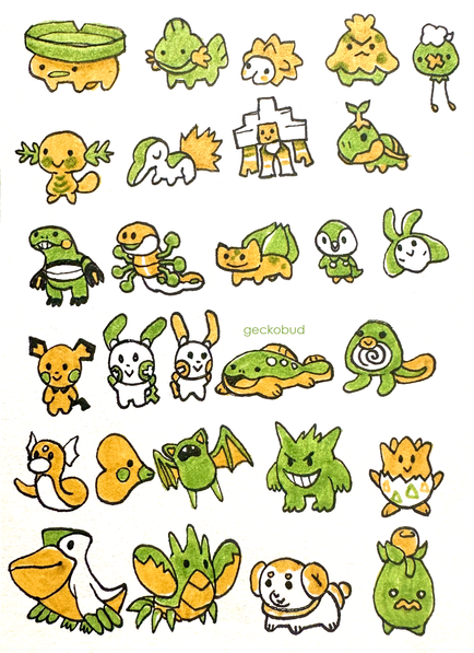 These are my favorite middle stage starters per generation in a silly style. Drew these with pen and copics!Related content