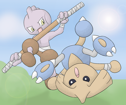 Hello! I'm sure you get a lot of comments and may not have time for me but I have a request for you. Could you please draw a Tyrogue with black pants and shoes that has a black, one strap backpack with two loopholes that hold a dark oak bo staff and a black scarf around his neck? If you could do that for me it would be great! Thanks!!!