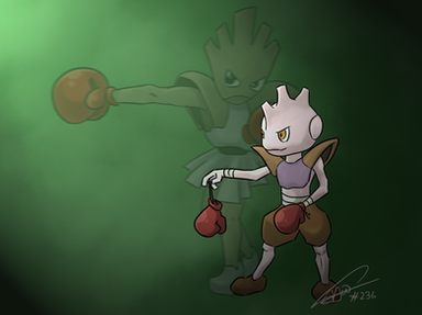 an up and coming rookie? it's official art looks like it's ready to wrestle, and it's pokemon type is scuffle pokemon, and it has rogue in it's name, so maybe a street fighter or a junior wrestler?