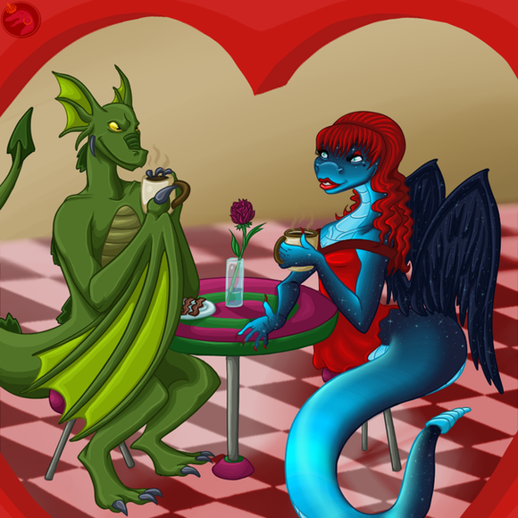 Request colored the artwork that didAs we can see here, Two dragon girls, one being a dragonfied Zero, are sitting down enjoying some tea. Even Zero needs to relax from the lab sometime, and possibly putting down being a dragon girl for relax purpose as "Researched Experience" seeing she sorta needs to know how these changes feel afterwords before trying them on others. If anything, maybe it was in the tea that did this. Ha ha!