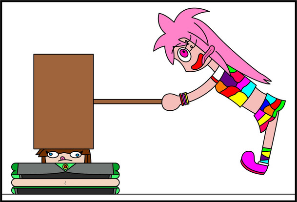 Colored the two arts that did for me, Fuze getting in more Toon practice did some Toon style Zero for me. I did the hammer effect myself to add in some detail as to how Zero got smashed into a flat coin.As we can see here, Zero is cute and toony. In her cartoonly sense of awe from her new cartoony features, didn't notice the giant hammer coming down on her as she's compressed and flatted into a toony coin. Most of the toon physics are still new to her and something she hopes to learn more of in due time.