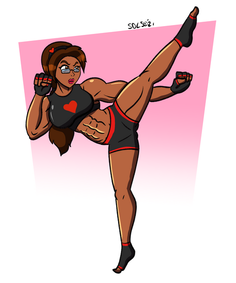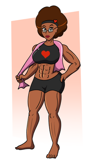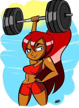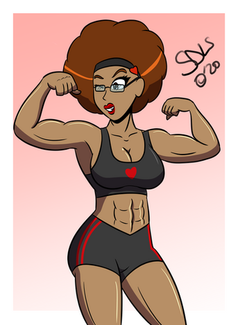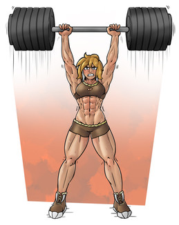 Uploading the commission that did for meAs we can see here, Sporty Zero with her Afro Bulma inspired look showing off those science enhanced muscles with some fun power lifting.