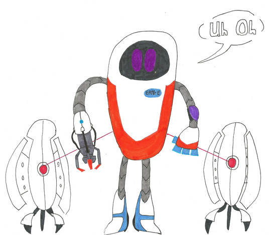 I noticed that too (EVE and turrets looking alike). That's why I drew this. I just thought that EVE and some of Aperture's robots look similar.