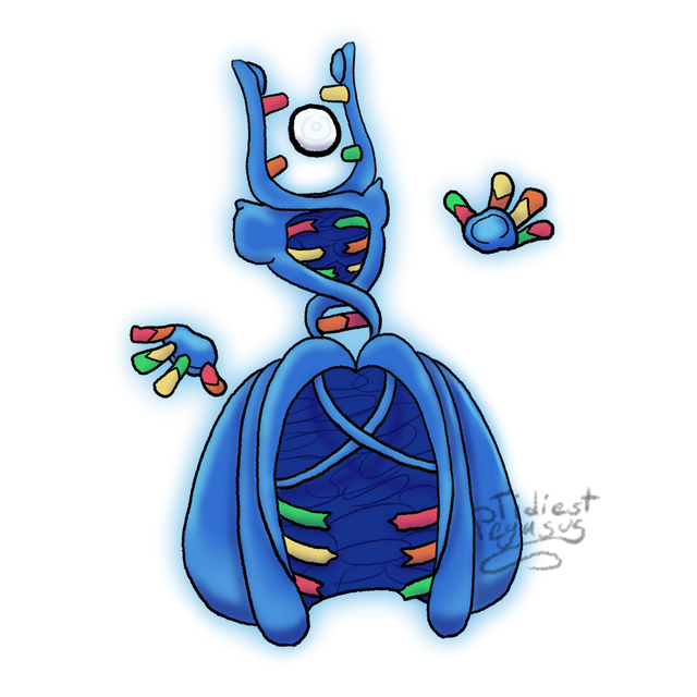 Missingno (in my storyline), is a pokemon that exists outside of reality. Her kind is formed by the excess energy that is shed from pokemon as they evolve; in other words, that white light that pokemon get covered in when they evolve. As the light fades, the energy leaves this dimension, and coagulates into a missingno. The most common missingno are shaped like tetris blocks or squares. More mature missingnos take on a form like this.