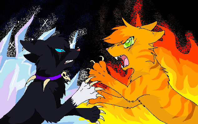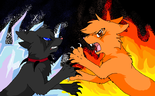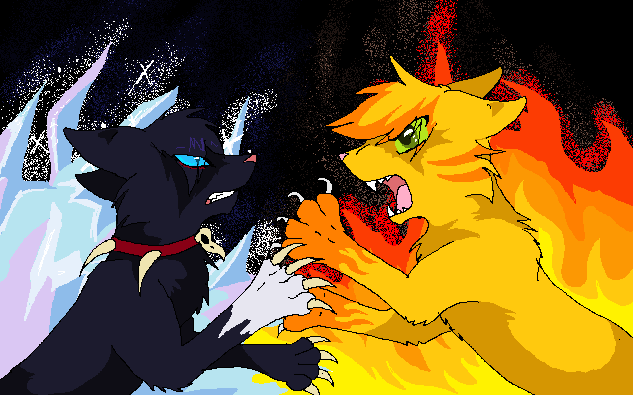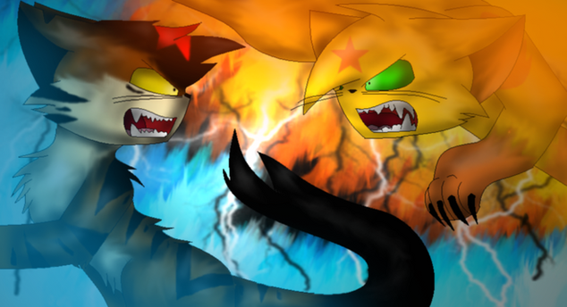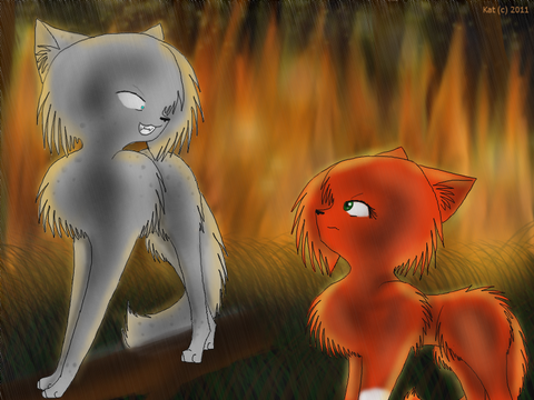 Come on you know you mist itThis is a remake of an old picture i did about two years ago of Firestar and Scourge stairing it off in the light of a red sun.