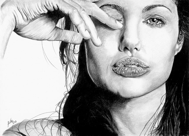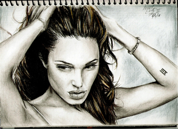 Angelina ^^ - Updated the old photo of this drawing. I decided the picture is finished for now, but I might work on it a bit more. Original pic is gfx.galawallpapers.net/photo/7… . This portrait is done free hand.Related content