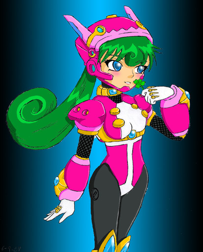 I really like her design. She looks like she'd fit into the mmx or mmz era. nice work, i love the hair especially!