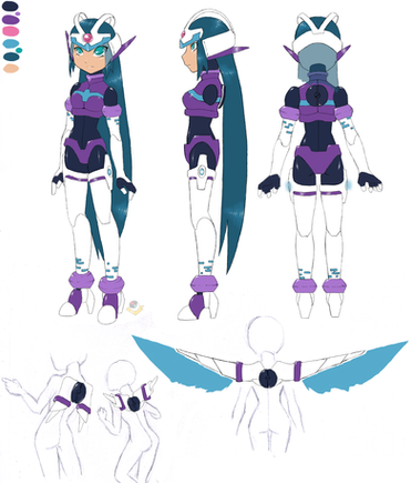 And oh wings design? Maybe I can give you one tip: Megaman X wings are very mechanical-looking, and usually design to look feathery, like Ferham's and Lumine's (CRUD LOOKING FOR WHAT HER NAME IS TOOK HOURS YO X_x), and they are usually associated with a pair of boosters/fans, placed either under the wings, on the wings, or on some other part like under the feet. There are also some type of wings that look more like flight balances rather than wings, like Axl's.