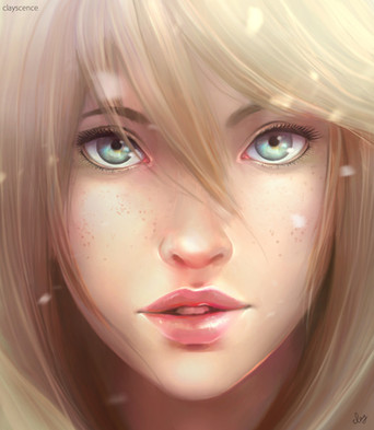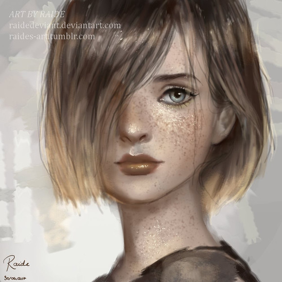 Love the intensity here. Interesting choice of design with the freckles on such fair skin and blonde hair.