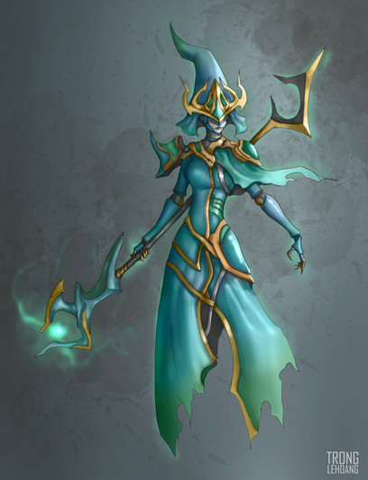 This kinda reminds me of Miss Fortune mixed with the shadow isles from the league lore. Kind of a Miss Fortune cross with Thresh.