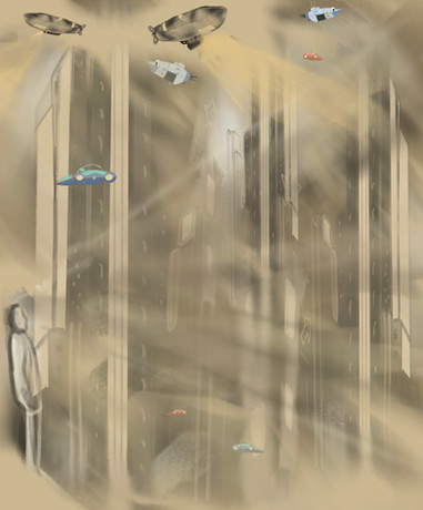 Love the colors! The overall orange pallet helps the red bus and train stand out even better against the background ^^