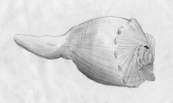 Created as a project for an art class, this surreal scene brings out many textures. The piece comes alive through the formations upon the planetoids, as well as the vine-like lifeform growing amidst the void. This is one of my favorites.The substrate is unbleached paper (lt. gray/brown), the medium is ultra-fine sharpie permanent marker in the foreground, marks-a-lot for the background. The two inks allow a slightly copper-hued medium for the forground texturing, and a distinctly void-black background. This one took me a few days, and about 4 markers to complete, the original is 12"x18". This scan is of the upper right portion of 8.5x11"