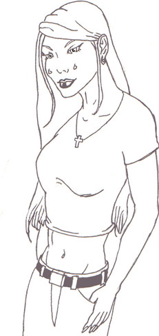Chola ( Annabel ) is a very distant relative to Valerie, shes a bit bigger physically, faster stronger, her blood is more pure, did I mention shes a trouble maker, doesn't care too much for authority, drinks too much, has a potty mouth, is something of a slut with varied and bizarre sexual proclivities, prone to violence, likes getting high on a variety of substances, doesn't believe in personal property rights(particularly those of the elderly) and hates Valerie's guts?Chola AKA Annabel belongs to James Ramirez aka Zeros-Shift