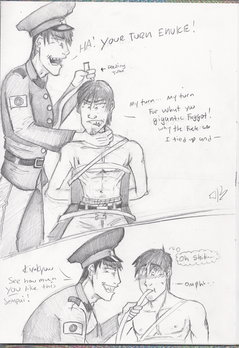Oh jesus lol this pic is so old but I still like it XD (as you can see I drew different back then) But yeah NK was Tens bitch for a while, literly! Ten took full advantage of poor NK lol also yeah I'd help him too, I'd cuddle him. Also oh god look how I used to draw SK! He was so scrawny and skinny back then, now hes this heaving mass of fat and muscle lol (mostly fat) lol but hes still a cutie