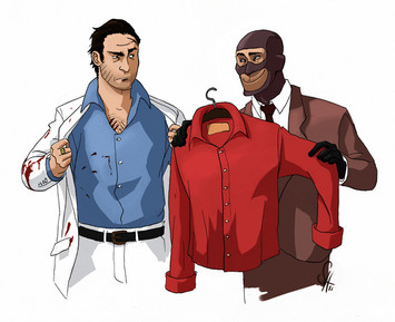 i was taking requests on tumblr. here's some sniper and spy in clothes they wouldn't normally wear.idek.