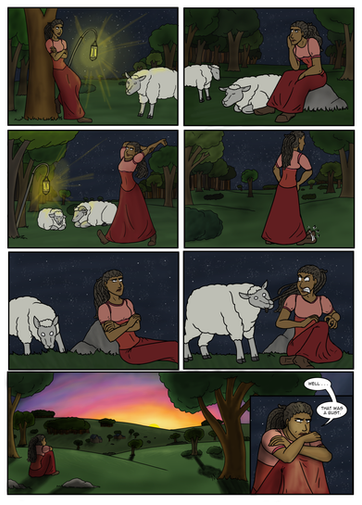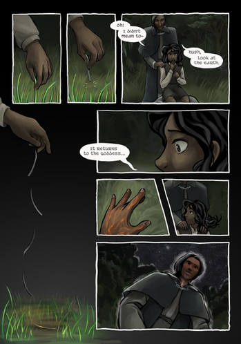 Also I realized now that the page is a bit misleading. my intent was to make it look like she was trying to control fire magic and was surprised that she was able to. Others have thought it looked like she ran out of mana.