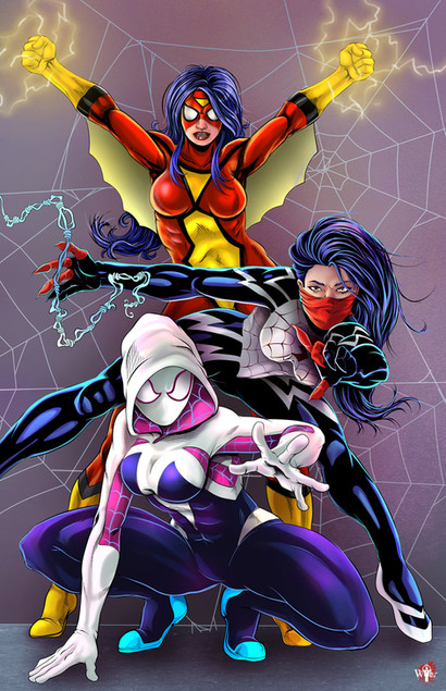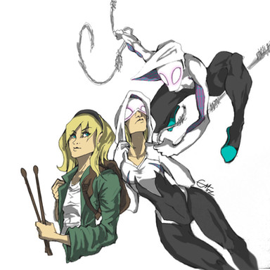 Just decided to do a drawing of my newest favorites from Marvel. From left to right: Spidergirl (Gwen Stacey), Gwenpool, and Mrs. marval (Kamala Khan).Created in Pen and Copic Markers.