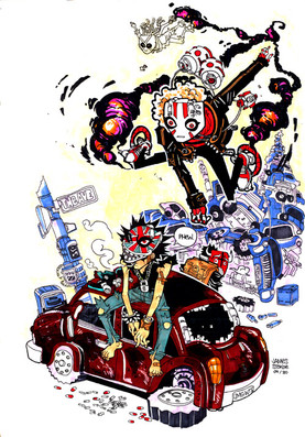 jaysus! i really love the chunks of the ground flying up where the catmonstro totally STOMPS down on it. oh and his fancy dbz-esque eyepiece. he's chic a la mode!