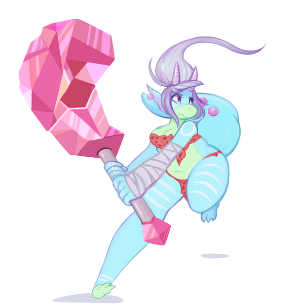 I can see how those quartzy crystals could be a problem, but they sure compliment her blue skin quite well. I like how the crystal has overgrown over her whole right arm, becoming a giant fist. Awesome stuff all around.