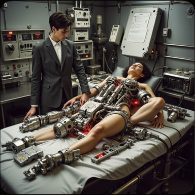 She was ever a human being.She received mechanization surgery and became cyborg.