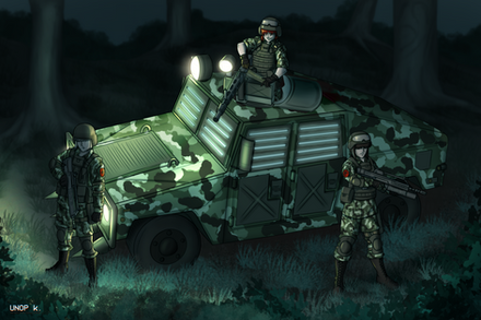 Following a long night and morning of patrolling, Azure 2A finally get the chance to take a breather and get some midday grub. Using the HMMWV their relieving unit brought along, they find a nice, scenic spot at which to kick their feet up. To their immense surprise, their replacements also brought doughnuts and canned coffee to share.