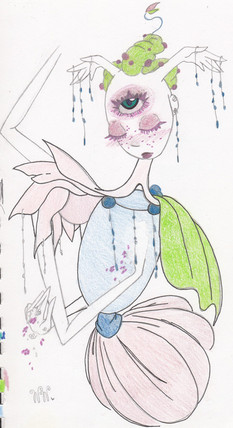 I really like this. Again, great illustration, nice, subtle colors. Very airy. This just has a real fantasy feel to it, dreamlike, you know? And a wonderful character as the center piece. The background seems a little unfinished, but I like that. It gives more focus to that which should be focused on, yet the background is nice in it's own right, as the lines are repetitive of the main character. Nice.