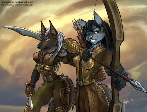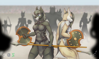 #anthro #armed #canine #commission #dog #fancy #female #friends #katana #scythe #sword #weapons #wolf #anthropomorphic #partnersincrime #anthrocharacter