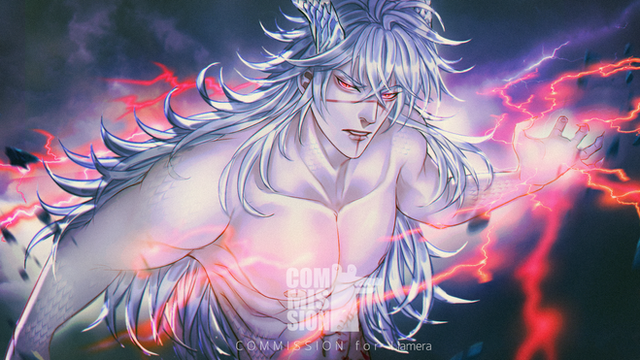 #anime #battle #bust #demon #japanesedemon #lightning #male #oni #stare #storm #threatening #thunder #yokai #animeinspired #animestyle #digitalart #digitalartist #digitaldrawing #fakescreenshot