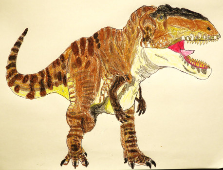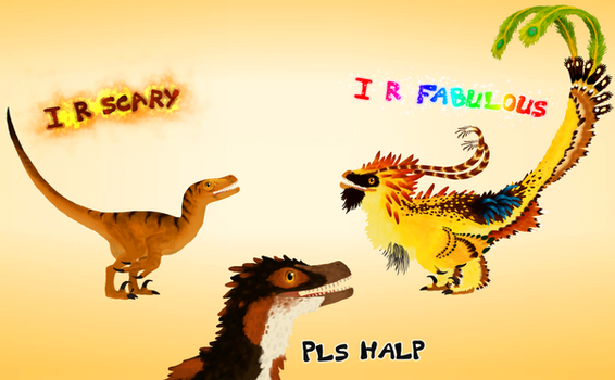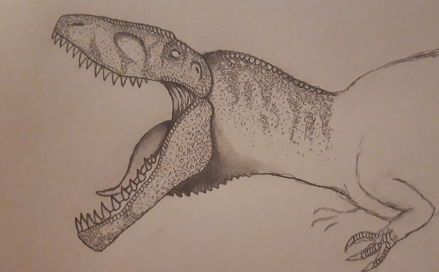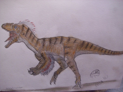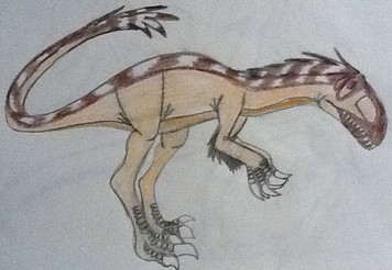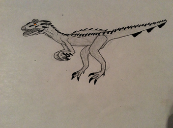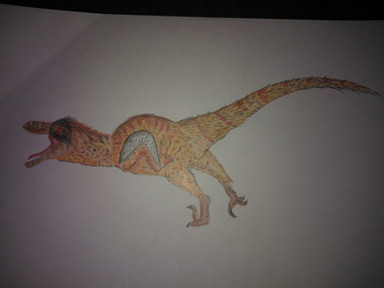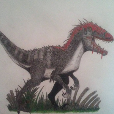 Le Dromaeosauridae de la série "Primeval" identifié comme "Raptor", officiellement, ils font partie de l'espèce Domaeosaurus (ils vivent aux côtés de Ptérosaures Pteranodontidae), bien qu'ils ressemblent plus a Deinonychus. C'est l'une de mes créatures préférée dans la série. Les mâles sont plus résistants que les femelles et aussi beaucoup plus agressifs, ils n'hésitent pas à attaquer des créatures aussi dangereuses que les Prédateurs du futur ou le Spinosauridae dans la saison 4. Ici, c'est un mâle, on peut le voir grâce aux tâches bleues sur sa tête. EDIT: J'ai augmenté le contrast pour que le dessin soit plus visible.The Dromaeosaurid of the series "Primeval" identified as "Raptor", officially, they belongs to the species Dromaeosaurus (they live alongside of Pteranodont Pterosaurs) although they look more like a Deinonychus. This is one of my favorite creatures in the series. Males are more resistant than females and also a lot more aggressive, they don't hesitate to attack creatures as dangerous as the Future predators or the Spinosaurid in series 4. Here is a male, we can see it thanks to the blue spots on his head, EDIT: I increased the contrast to make the drawing more visible.