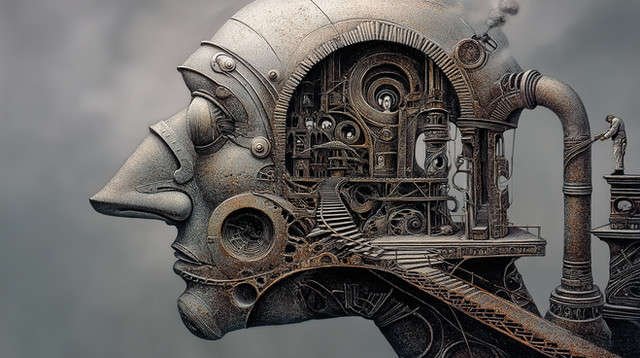 #digitalart #surreal #ai #gears #mechanical #profile #sculpture #aiart #midjourney