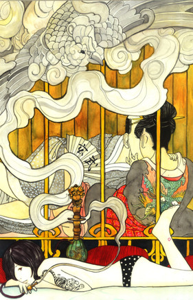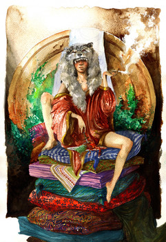 This is really, really stunning. I love the style/texturing you used for the skin, and the Persian rug in the background. The lines in this are also fantastic; everything feels reall fluid.