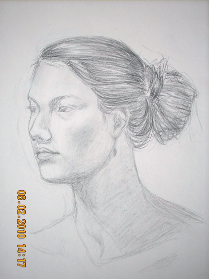 It was charcoal. I know toothy paper is the traditional choice for that, but I got so accustomed to drawing on newsprint during class that the transition would bug me. I'm still getting used to charcoal as a medium - there are probably many reasons why I couldn't get it into the "fibers" of the paper, but they escape me!