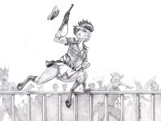 From my Natural Splendor portfolio. Most likely only greymuzzles will get the joke. He's a ringtail, also known a 'ringtail cat', a member of the raccoon family. Just like Terrie Smith's Chester.Medium: marker handcolored print that was sold at CF8. I still have the black and white original, if anyone's interested in buying it.