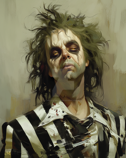 It's beetlejuice!! I love that film!! Your painting style is excellent. I like how it looks like he's got trees in his hair.