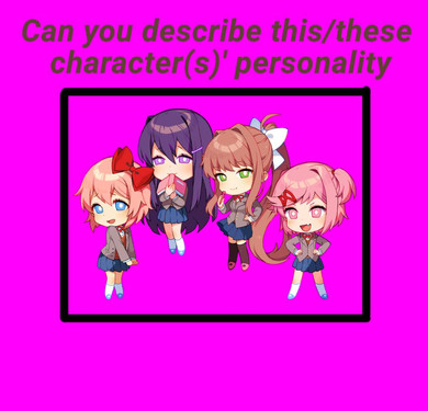 If you don't know the characteres,check the wikia or the description(I tried to write the most accurated thing in the personnality,I don't have the game)