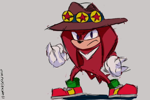 Ahh, wow! Another fantastic collab that you and Paincaked have done, this time with Classic Knuckles from Sonic OVA! I just love his hat! I love his pose and expression too!