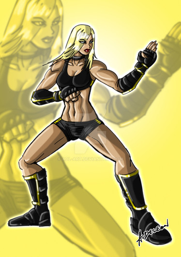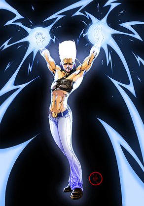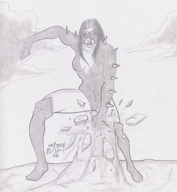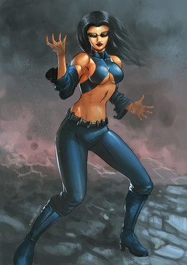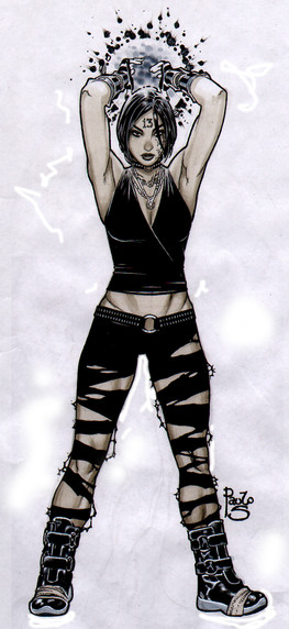 Divine, the negative/opposite/BIzarro/Whatever!! of Powergirl. She is the exactly opposite of Kara Zor-L. But (lucky) have the same bra size.Divine, la negativa/opuesta/Bizarro/lo que sea! de Power Girl. Es la reversa excta de Kara Zor-L. Excepto (por suerte) en la talla de sostén.