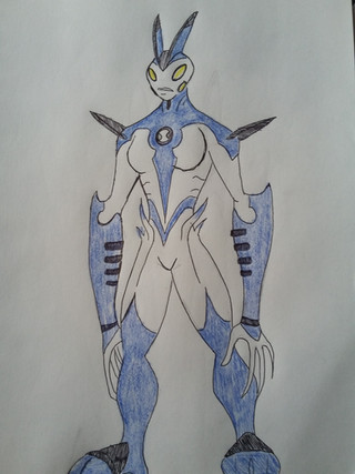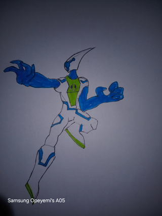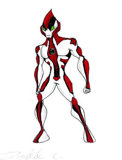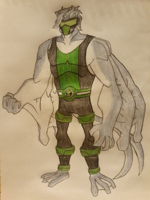 A redesign of s alien Airlement www.deviantart.com/phantomevilβ¦His powers are Aerokinesis, his skin has small pores that take in air and release it in giant bursts. With his back fins, he's capable of flight/gliding.