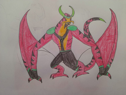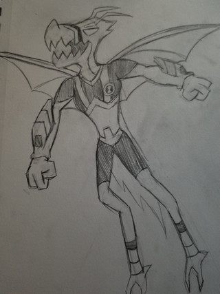 Nice. If I redid Astrodactyl, his species would have large humps that contain a supply of fat reserves that is converted into energy that has a slight burning effect that his race evolved as a defence mechanism against Tyrannopede and their webbing. The original design for Astrodactyl would be used for a future rogue of Rook who was given cybernetics by Kundo (who by this point has took on the belief that he should share his "curse" with other races) and boosted in power by the metallic wings that now fully retracted into the jetpack-shaped power enhancer on his back that replaced the hump (which also has minor mind-controlling effects on the poor Pterosaur Alien).