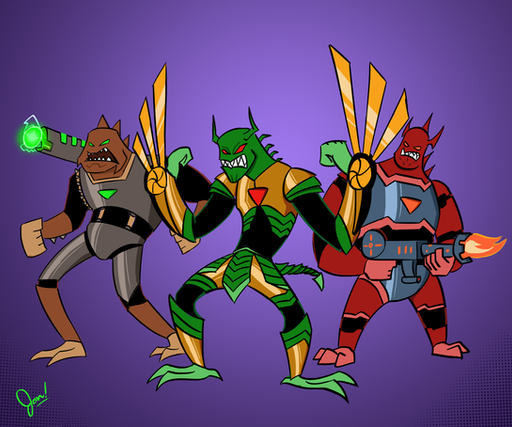 A belated birthday present to my bro, Kevfilms2x2 of the idea we came up (and that he mostly manages now) of two slacker dudes who come upon a crashed alien vault filled with advanced weapons that a giant lizard empire is after as well as Earth authorities who want the weapons for their own plans. It's Kev (red), Tom (blue), and Ace (lil' robo) against the galaxy, but hey, who says you can't have fun while destroying evil alien armies and causing mass mayhem against villains.Sorry this took so long Kev, hope you love it, bro!