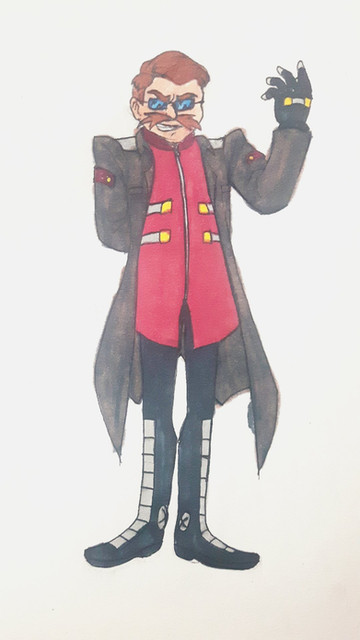 Replacing the version that I made in 2016Doctor Ivan Robotnik came from a family of geniuses with his grandfather Gerald and mother Maria. Ivan's life took a huge turn early on when he was one year old and the "ARK Incident" stole his family away from him. Ivan was dumped in an orphanage under the name Ivan Kintobor and grew up to be an incredibly smart child, graduating from college at 10 years old. Before making it to college, there was an incident where a bully punched Ivan in the face at lunch and humiliated him in front of their fellow students. Ivan would get his revenge a few days later when a device he built would attack the bully and cause him to spend the next year eating through a straw. This action also resulted in saving the bully's next victim, a kid called Leonard Stone, who from that day would follow Ivan wherever he went an assist in any way possible. During the course of college, Ivan would get 5 PhDs and after graduating, he would hone his skills in taijutsu and tracking with the Native American Shadow Wolves. In his late teens, Ivan would be recruited by the US Military to engineer advanced weapons of war. Ivan would go on to create some truly effective weapons, but also keep some of his more advanced creations to himself. Ivan would also discover that his superiors were keeping a file on him and also other files about his past. Ivan discovered everything about the ARK Incident and also about its cover up, also the fact that his real name was Robotnik and he had a family that was taken from him. From this moment on, Ivan struck out on his own and vowed to make the world a better place....for himself, by making machines that would eventually replace all living being (minus Stone, Robotnik still needs his latte).