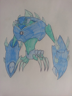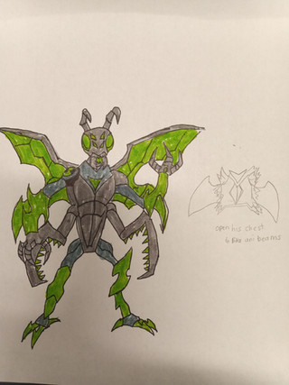 Powers/Abilities: Flight, Durable Exoskeleton, Projectile Pincer Claws that be shot away from the arms and holds tight to what's in its grip and the claws can also retract back to the arms. The combination of this projectile claws and flight allow for a fun time dragging around whatever he gets his mitts on. The segmented abdomen on his back releases short bursts of energy that allows for more propulsion while in flight.