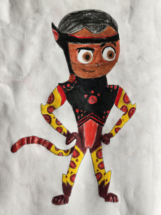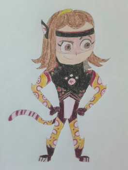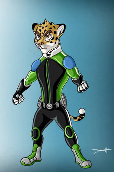After making it out, Sarah started to collect computers while Nikki was bored and started to explore the quarantine zone and came upon a comic book store. There she started to read all kinds of books (at super speed) that her parents told her were pure nonsense and made her focus on other things. Her favorite was The Dasher, a super fast hero who fought against bad guys bigger and more powerful than him. This admiration caused Nikki to want to help others and so she started crafting a superhero identity, first with her name Fast Kat and then with her "costume." She got the shirt, shorts, and shoes first, then got the goggles and protective pads after a few fights and crashes made her realize that safety was a big part of the job too. Nikki even found a large patch with a cheetah on it that would be perfect for her hero symbol and sewed it to her shirt (as best as she could). During this time, Sarah was getting deeper and deeper into hero digital work and Nikki was once again alone.