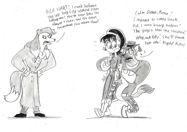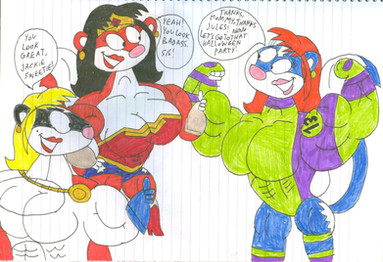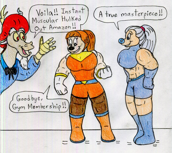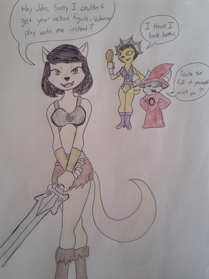 A belated birthday gift for . Kitty, Allison, and Kimiko are at the mall, getting a gift for John. He's also wanted the much sought after and ultra rare He-Mutt deluxe action figure. Using some connections, Kitty manages to get the figure and here's their reactions right after purchasing it. Kitty is glad they finally got it, Allison is thinking of how strange a gift this is, and Kimiko doesn't care and heads to the mall food court.Here an alternate picture of what happened when the trio did when they didn't get the He-Mutt action figure.