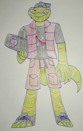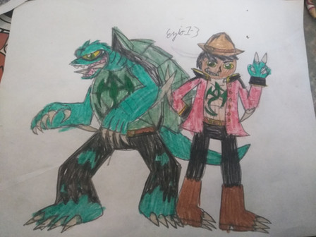 Shellshocker, a big fan of the Hybrids and nephew to Weston Trexler AKA TREXHis real name is Tim Ordus and he is a triple hybrid, with a Galapagos Turtle/Electric Eel Form.
