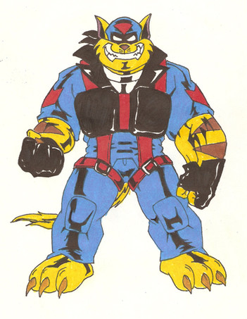 A character concept I did for a villain belonging to NRGComicsNow this one was a specialty of mine since it was an anthro animal. The only issue with the first design I did for this guy was that he wasn't JACKED enough. His legs were muscular, but his arms weren't big enough (being a rabbit and using his legs mostly was my logic). The second attempt went better and led to this version. One nice touch I liked including was having him sport an earring, but it being a test animal tag to allude to his past as lab test animal.