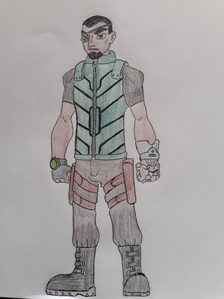 So I've been discussing Kevin 11 alot and that got me to thinking of redesigning him again to give him more of a better look. Here he's demonstrating his absorption powers with matter and energy.For this Kevin, he didnt meet up with Ben and Gwen at the start of AF. He attacked them and Cooper later on and transformed into an amalgam form matching the AF first ten aliens, though he was defeated and Copper slapped a control cuff on Kevin's arm. A magnetic field keeps Kevin from interfering with it and it inhibits his powers so he won't do anything drastic like try to steal more aliens out of the omnitrix or use his powers against Ben or the others. Now Kevin is the unoffical fourth member of Ben's team since he can't be taken to Plumbers HQ (Theyve been busy with Highbreed attacks all over the world and can't spare any men to watch him.)