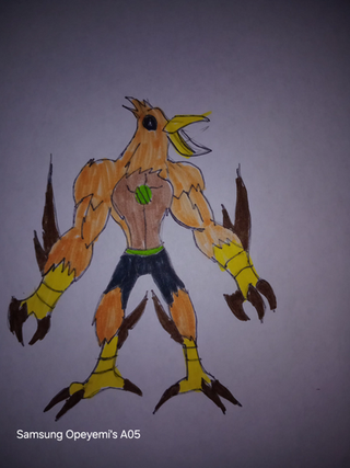Weaknesses: Kick-Axes body isn't as well protected as his head and legs. Despite being a bird-like alien, it cannot fly due to its small wings,