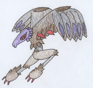 Powers/Abilities: Strong talons and beak that can tear through stone, powerful head plates that function as protection and are used for headbutting his enemies, Strong neck muscles for powerful head bashing, Strong leg muscles for climbing and very powerful kicks, Agility, Advanced Reflexes and Speed, Limited Camouflage, Seismic Detection (senses vibrations through its feet to find its prey)
