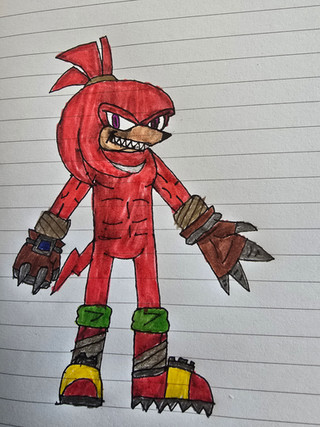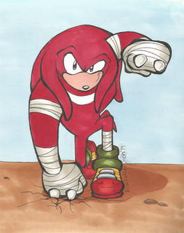He's a bitΒ like aΒ no nonsense guardian at first but after losing the master emerald, he becomes an aimless wanderer who fights others in cage fights justΒ to get by until he can find a clue about the emerald. He's a bit dim witted because he's never learned anything beyond what was around his island, but his hearts in the right place. Knuckles is also quick to anger because he's too easily fooled and when he finds out about it, he starts fuming and goes on a fist fueled rampage.